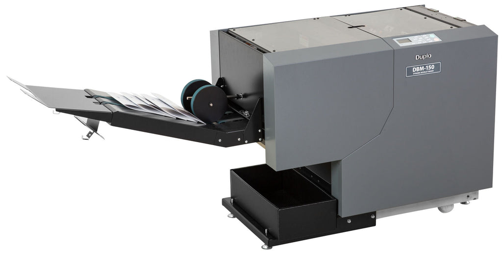 The DBM-150 is the world’s smallest fully automatic bookletmaker and trimmer. Equipped with Duplo’s superior engineering within a compact footprint, it can produce finish documents either sheet by sheet or set by set. The DBM-150 is designed to meet the challenges of today’s offset and digital printer. Duplo has bundled the features of the big bookletmakers into this uniquely compact system.