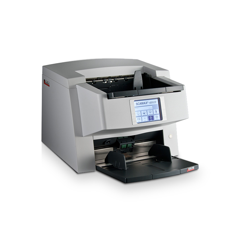 The SCAMAX® has a newly designed feeder concept which ensures that a widely varying range of documents can be fed automatically through the scanner. Even the thinnest of paper is transported through the scanner reliably, ensuring minimum downtime due to misfeeds.